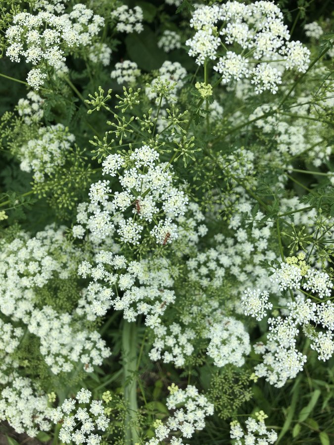 Something in the umbellifers group perhaps (parsely, carrots, etc…). There are many genera in this group. I have some ideas but unable to go further. We need to see other details to narrow it down for you. Please resubmit with photos of leaves, side view of the plant & fruits /seed pods if there any. Thank you and best wishes!
