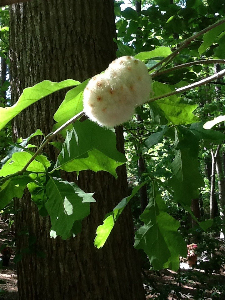 Always thought this was an oak tree but this noticed these white puffy things, never seen em before is it sick?