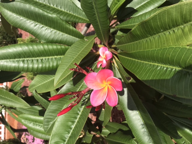 Was given a bare stock from lady in California several years ago, it rooted easily, wonderful fragrance. Mine is pink. Common name; Frangipani.