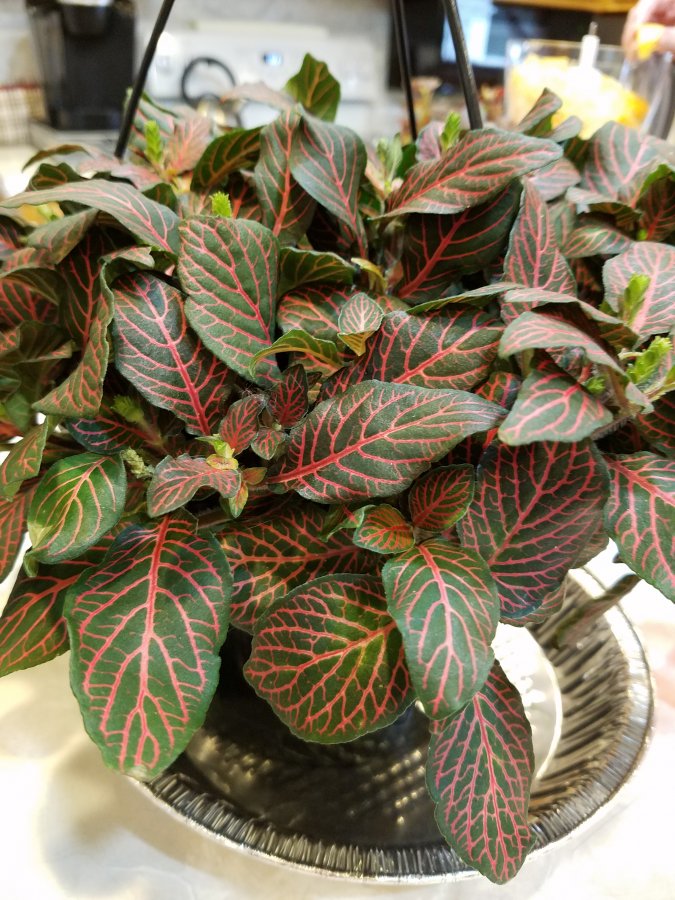 Tag only identifies this plant as a tropical plant. Dark green leaves with red veins.