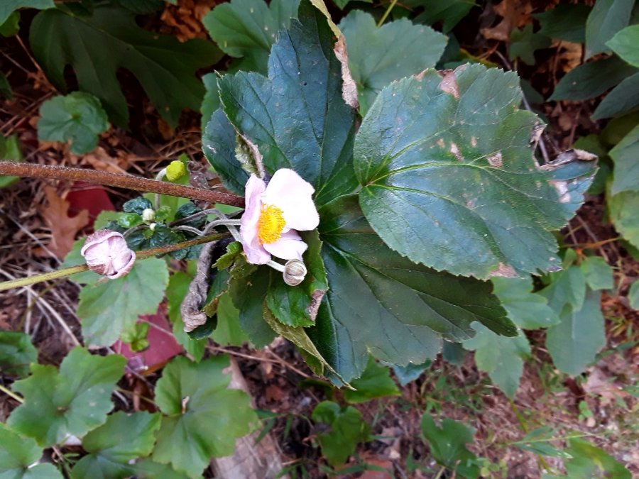 It is a perennial. It has large leaves and in the fall small pinkish flowers. It grows in a spreading clump.