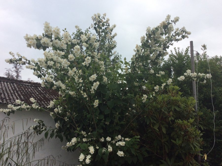 Although you gave a good description of the plant. We still like to see closeup details to narrow the correct ID for you. I could only guess for now, maybe a cultivar in the mock orange (Philadelphus)? If this isn’t the suggested genus. Please resubmit with closeup details of flowers, leaves & stem’s side view. Thank you & best wishes! Link to the genus. https://en.wikipedia.org/wiki/Philadelphus