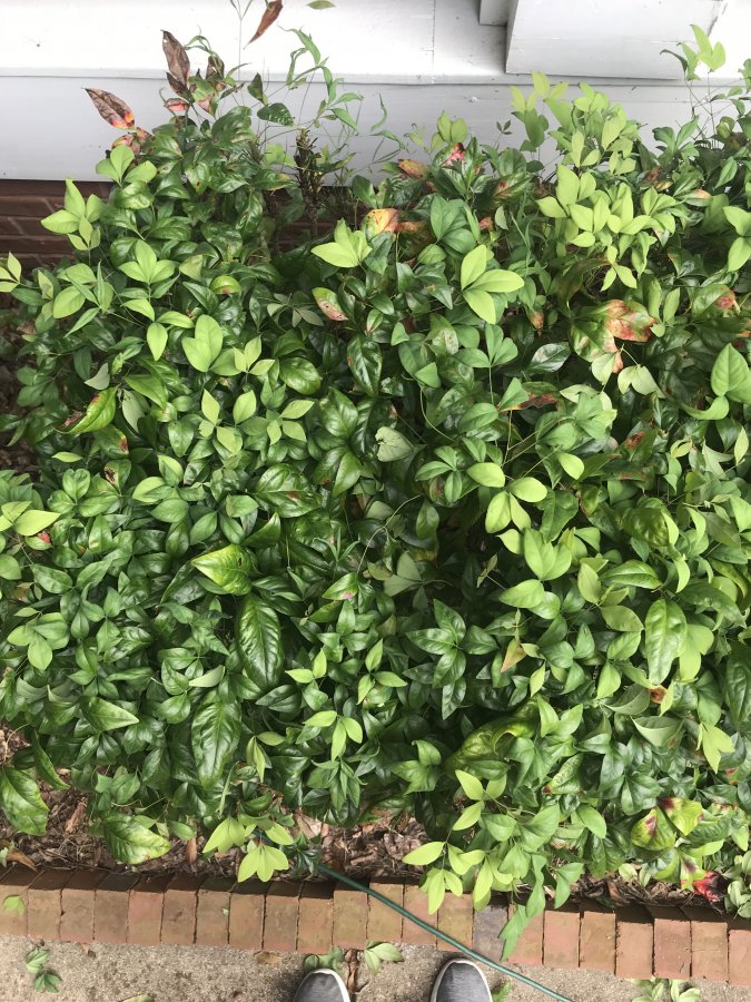 We have multiple shrubs like this planted outside our house. We just moved here and donÕt know what they are or how to prune them the best way. They have a lot of branches and the leaves seem to grow in clusters at the top of branches.