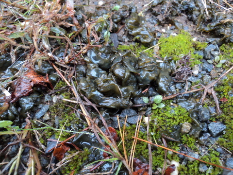 This stuff is growing in the drive and just out side the carport in the gravel at our Mt place outside Ellijay Ga. It is very slippery when you walk across big patches of the slime.