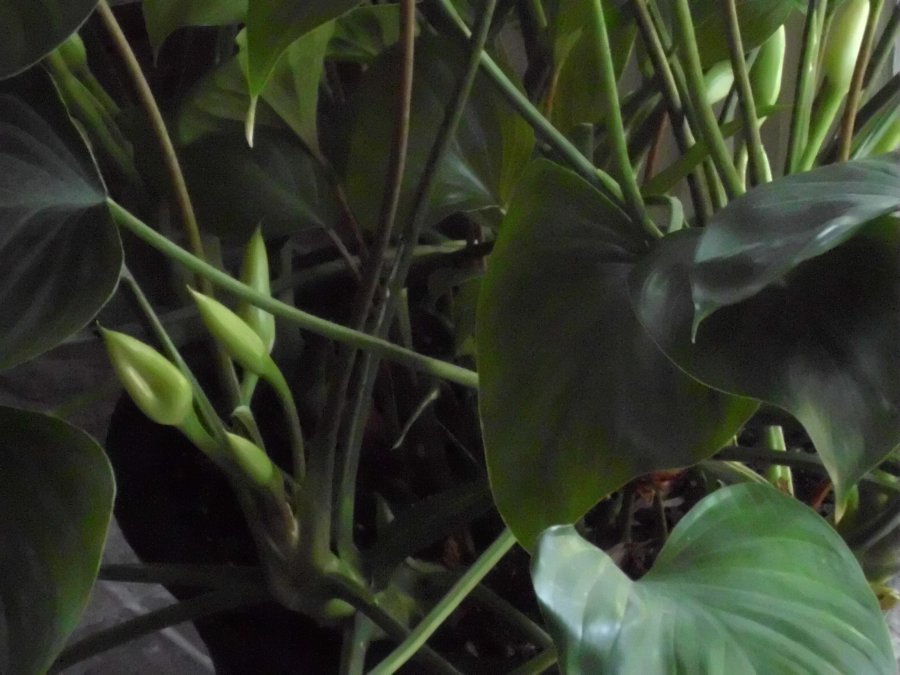 I’m sure that this is from a funeral, years back or something. I don’t even know what it is! I guess I’m taking pretty good care because from the tiny “funeral plant” in a BUNCHA tiny plants… it’s grown like crazy. I’m worried that it needs more or less water, I need to know if the light is right? It’s a pretty big pot, but still… some like even BIGGER! Oh and those “pods” growing out of it have tiny buds (almost like an ear of corn inside, except white) but last yr nothing came of it