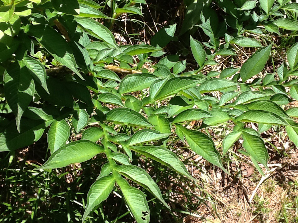 This plant appeared in my neighbor’s garden amongst her azaleas. It is about 3 feet tall with no berries or flowers. It has 2 smaller ones growing underneath it