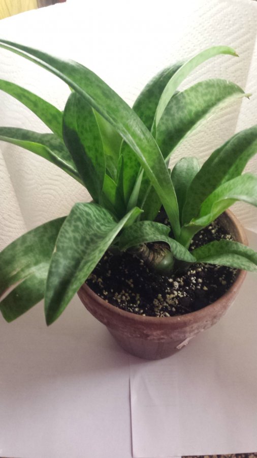 I bought this plant at a Botanical Garden with the label Snail Killer. I have looked it up by this name to find out more about it and cannot find information under this name. It is a bulb type plant. The bulb appears to be green where it shows through the dirt. When I bought it it had a stem of small white flowers that shot out of the center of one set of leaves. The leaves are very thick and green splotchy. Thanks, Hugh