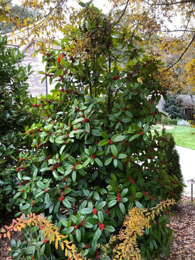 The leaves & fruits details are not close enough to be certain. I’m guessing this might be the luster-leaf holly (Ilex laurifolia) or one of its hybrids? If this is luster-leaf holly, I can’t tell which one this is. Some of the cultivars include: ‘Mary Nell, ‘Alva’, etc… Check out the cultivar ‘Lea Bates’ from the included link below (scroll down to the bottom of the page). Best wishes! http://www.hollysocam.org/test-hollies.htm