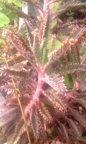 Kalanchoe daigremontiana, Mother of Thousands. http://www.drought-smart-plants.com/kalanchoe-daigremontiana.html