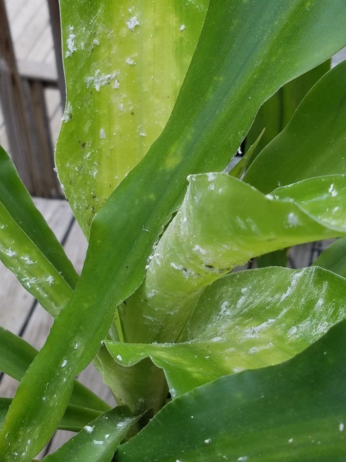 This is m inside plant with in the last two week I have seen this white spots. I used to cleaned with a damp towel buy now it is out of control. Can I saw it or it is time to let it go. What’s wrong?