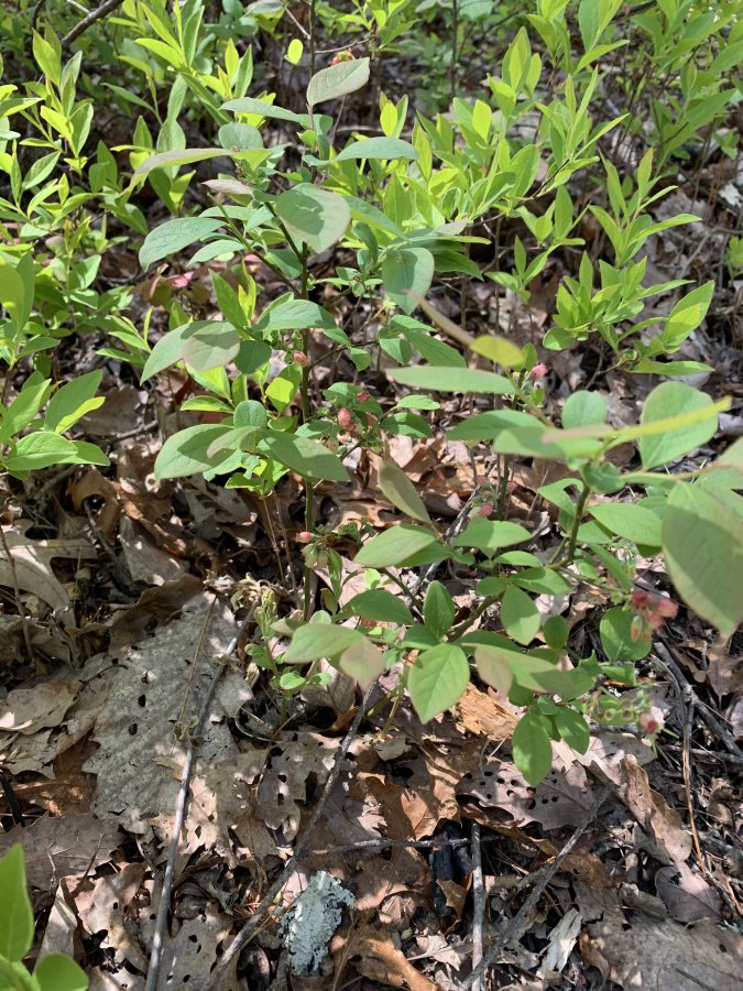 Check out Blue Ridge Blueberry / Hillside Blueberry (Vaccinium pallidum) and see if you have a match. Best wishes! https://www.illinoiswildflowers.info/savanna/plants/hs_blueberry.htm