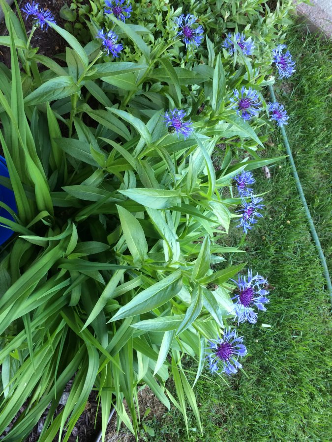 Looks like something in the Centaurea montana (moutain bluet). Check out a garden in GA with them. Best wishes! http://www.walterreeves.com/name-that-plant/purple-and-white-mystery-flower/