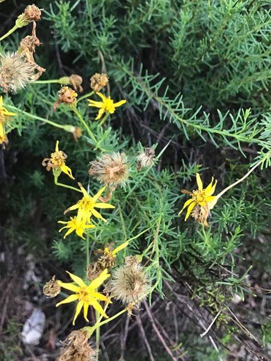 Wish I could see the leaves in higher resolution to be certain. I’m guessing for now, this might be the native Damianita (Chrysactinia mexicana). Check it out and see if you have a match. Click on images to enlarge. Best wishes! https://www.wildflower.org/gallery/species.php?id_plant=CHME3