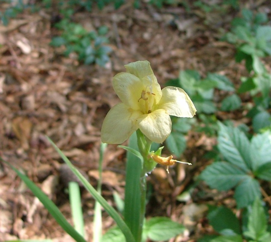 Spent flower is harder to narrow down. I’m guessing only. This might be something of Gladiolus dalenii group? You could try the experts from Paific bulb Society for its correct ID of what ever your plants is. Best wishes! http://www.pacificbulbsociety.org/pbswiki/index.php/Gladiolus_dalenii