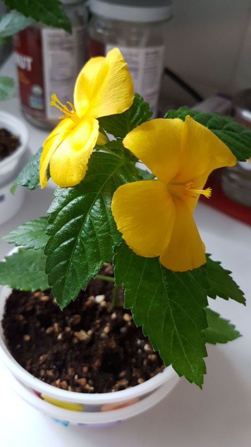 Check out Turnera ulmifolia, it has numerous common names. Some of these include sage rose, West Indian holly, yellow alder, yellow buttercups, Turnera buttercup etc…Click on image to enlarge from the included link below. Best wishes to you & your pooch! https://en.wikipedia.org/wiki/Turnera_ulmifolia